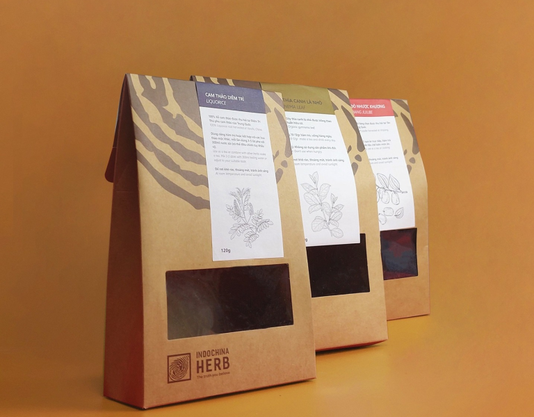 Về thiết kế, hộp thường được in offset họa tiết hoặc logo để tăng tính nhận diện mà vẫn giữ được phong cách tối giản. Thay vì in trực tiếp các thông tin sản phẩm, nhiều đơn vị lựa chọn sử dụng nhãn dán giúp linh hoạt trong phân loại và tiết kiệm chi phí.
