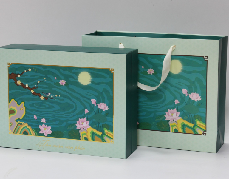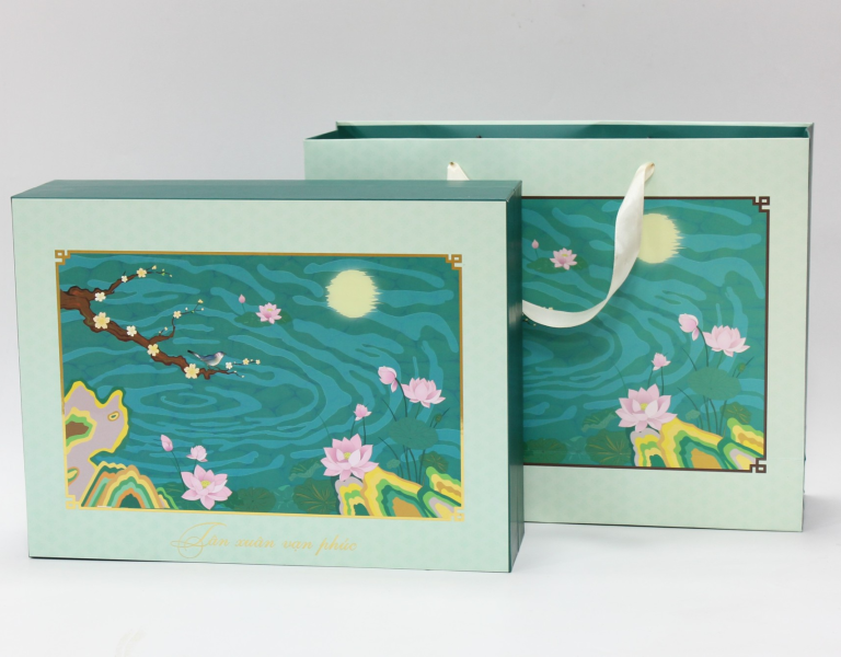 - Bao bì hộp quà Tết được sản xuất với quy trình in ấn hiện đại, chú trọng cả thẩm mỹ lẫn độ bền trong quá trình sử dụng và vận chuyển.