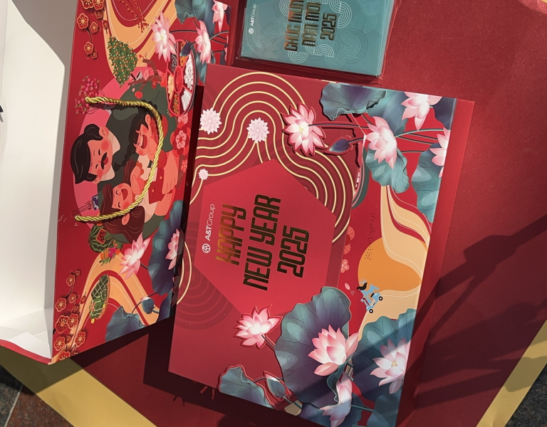 Quá trình thực hiện bao gồm phân tích bản vẽ 2D, điều chỉnh bố cục và chi tiết hình ảnh để đảm bảo tính cân đối, đồng thời đồng bộ hóa phong cách giữa tất cả hạng mục. Kết quả, bộ sản phẩm hoàn thiện mang lại cảm giác sang trọng, tinh tế, giúp AT Group nâng tầm giá trị món quà Tết và tạo dấu ấn thương hiệu rõ rệt với khách hàng.