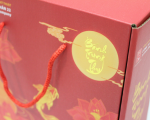 Hộp được thiết kế theo dạng nắp gập hai cánh, có phần quai dây rút tiện lợi để người dùng dễ dàng mang theo như một chiếc túi quà sang trọng. Bên trong, cấu trúc chia ngăn được gia công chắc chắn, giúp cố định sản phẩm bên trong, tránh xô lệch khi vận chuyển. Đây là điểm cộng lớn khi hộp vừa đẹp bên ngoài, vừa đảm bảo công năng bảo quản bên trong.