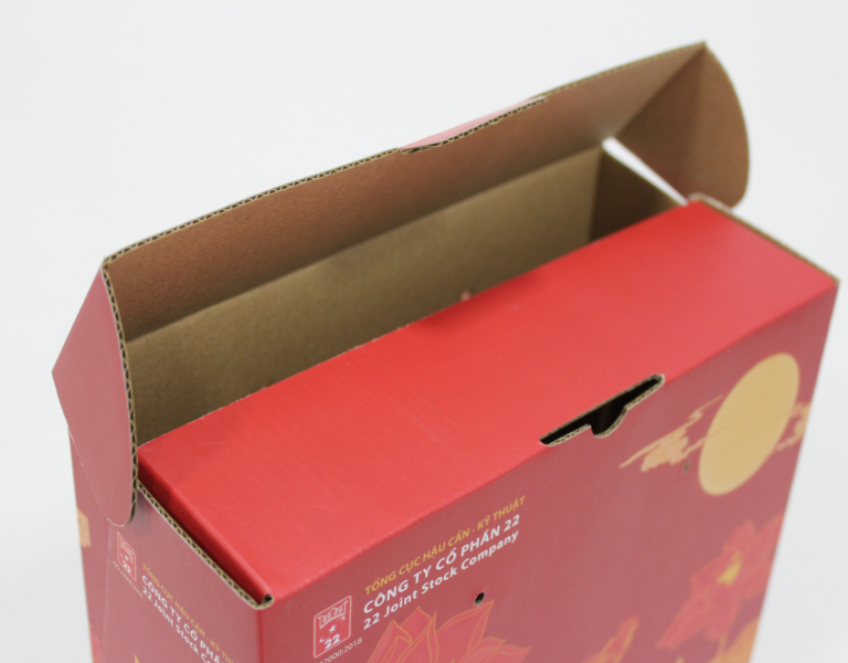 Sản phẩm sử dụng carton sóng, vừa có độ cứng cáp, vừa tạo bề mặt phẳng đẹp để in ấn. Bên ngoài được bồi giấy Duplex không chỉ gia tăng độ bền mà còn tạo ra lớp ngoài phù hợp cho in offset. Nhờ vậy, màu sắc trên hộp sắc nét, bền màu và dễ dàng kết hợp các kỹ thuật như cán mờ, ép nhũ, dập nổi…. Nhờ cấu trúc này, hộp vừa nhẹ, vừa đảm bảo độ cứng cáp khi vận chuyển xa.