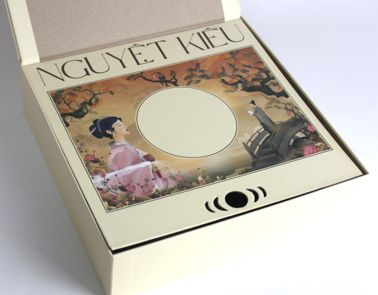 Hộp được thiết kế dạng nắp liền gập mở, tạo trải nghiệm mở hộp như một quyển sách sang trọng.