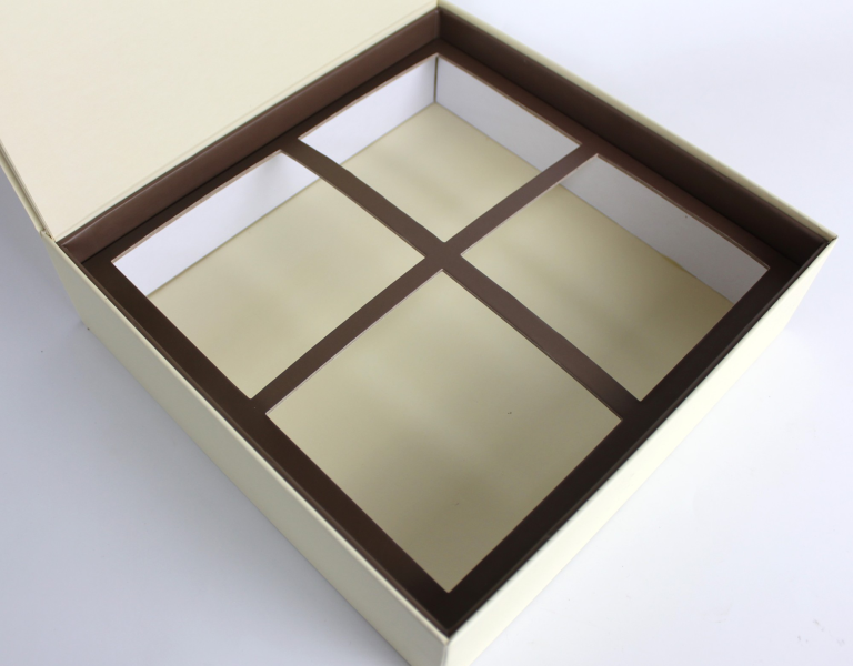 Điểm đặc biệt nằm ở hai nắp phụ bên trong, giúp hộp đóng khít, giữ form chắc chắn và bảo vệ sản phẩm tối ưu.