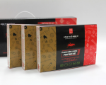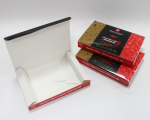 Hộp ngoài được sử dụng chất liệu giấy Duplex bồi với lớp sóng E giúp hộp cứng cáp, tăng khả năng chịu lực. Ưu điểm bảo vệ sản phẩm tránh va đập; bề mặt in sắc nét, thể hiện rõ ràng đồ họa thương hiệu; phù hợp đóng gói nhiều hộp đơn bên trong. Hộp đơn bên trong sử dụng giấy Ivory cán bóng với về mặt trắng mịn giúp giúp tăng độ sang trọng và chống thấm nhẹ.