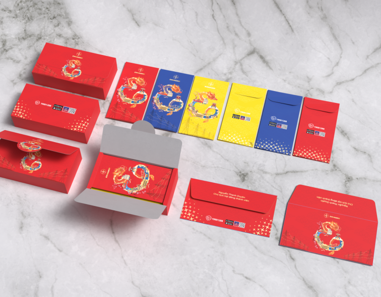 INKROC thiết kế và sản xuất hơn 200.000 phong bao lì xì EVN Hà Nội, lấy cảm hứng từ danh lam thắng cảnh Thủ đô và hình tượng Rồng cách điệu chữ “E” – biểu tượng của thương hiệu. Từ bản thiết kế đến ấn phẩm Tết trên tay, bộ lì xì lan tỏa hình ảnh EVN Hà Nội gần gũi, sang trọng và giàu bản sắc văn hóa trên toàn quốc.